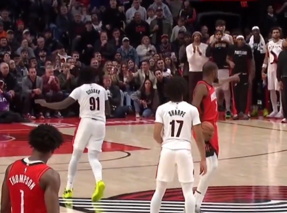 在最后还剩5.9秒时,火箭落后3分,开拓者选择点球。被犯规后,杜兰特指着开拓者那边的替补席骂了一通,美媒解读了他的唇语:“软爆了(THAT'S WEAK AS FuCK)。”