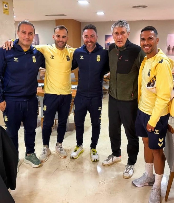 本轮西乙联赛,拉斯帕尔马斯1-4不敌桑坦德竞技暂列积分榜第三位,前国安主帅塞蒂恩受邀现场观战,他还与拉斯帕尔马斯球员赫塞、比埃拉等人合影留念。